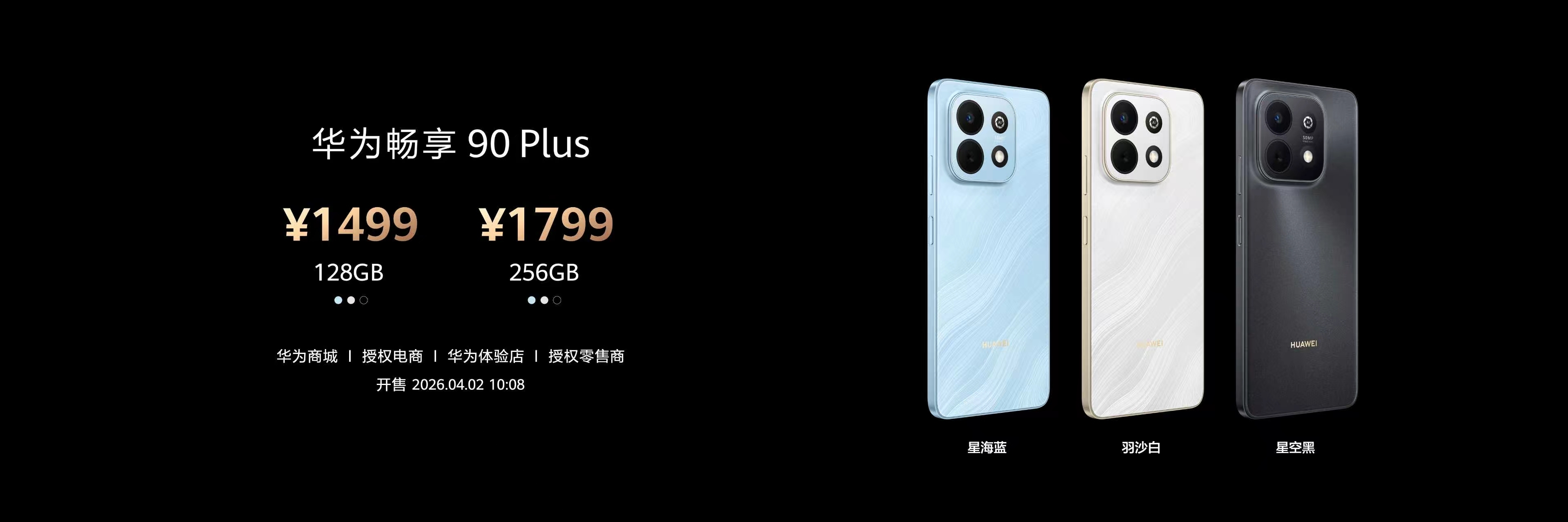 3月23日下午举行的华为春季全场景新品发布会上,华为发布千元机(1299元起)畅享90系列,该机搭载麒麟8系芯片、鸿蒙操作系统6、鸿蒙AI,其中华为畅享90 Pro Max搭载8500mAh巨鲸电池。